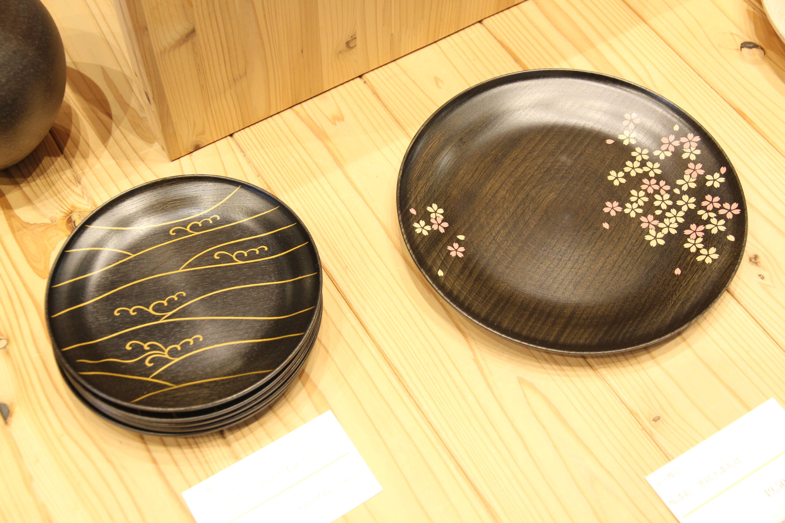 こちらは、清水一人さん,谷口博山さんの山中漆器の作品です。