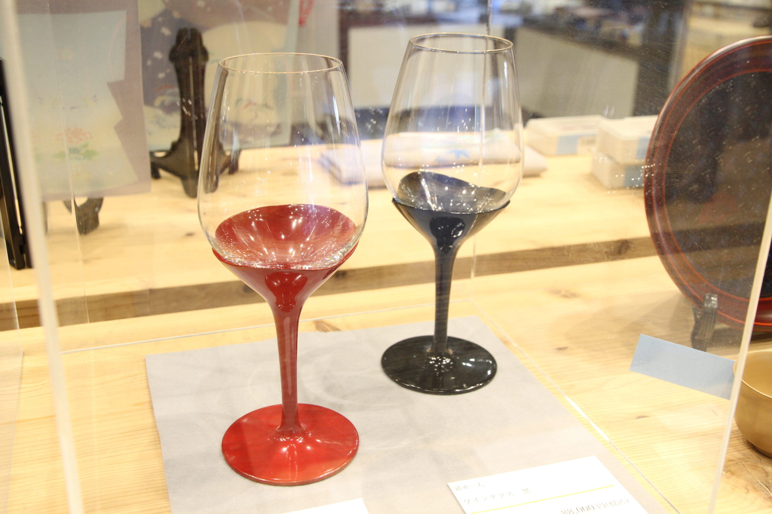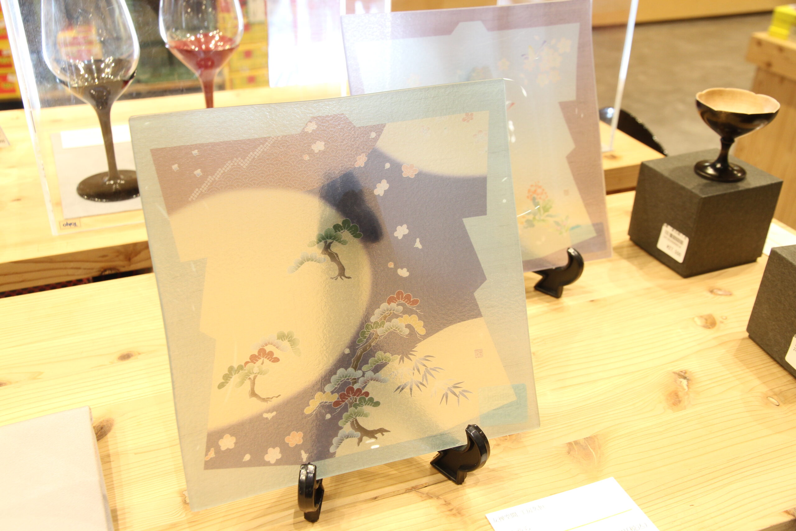 こちらは、徳島の山口木工さん、ガラス工芸作家さんと、石川の田谷漆器店さんのコラボレーション作品です。