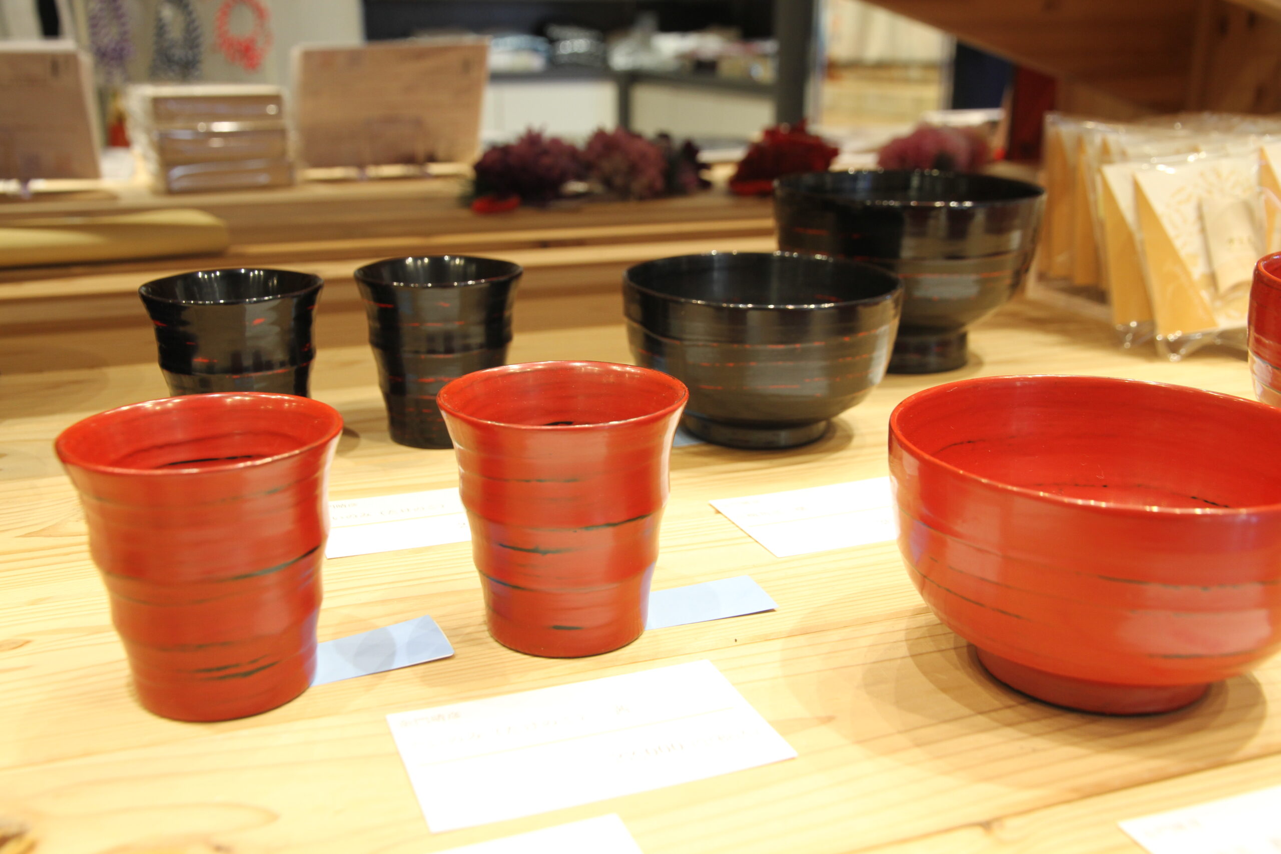 鮮やかな朱色と深みのある黒色が素敵な輪島塗。